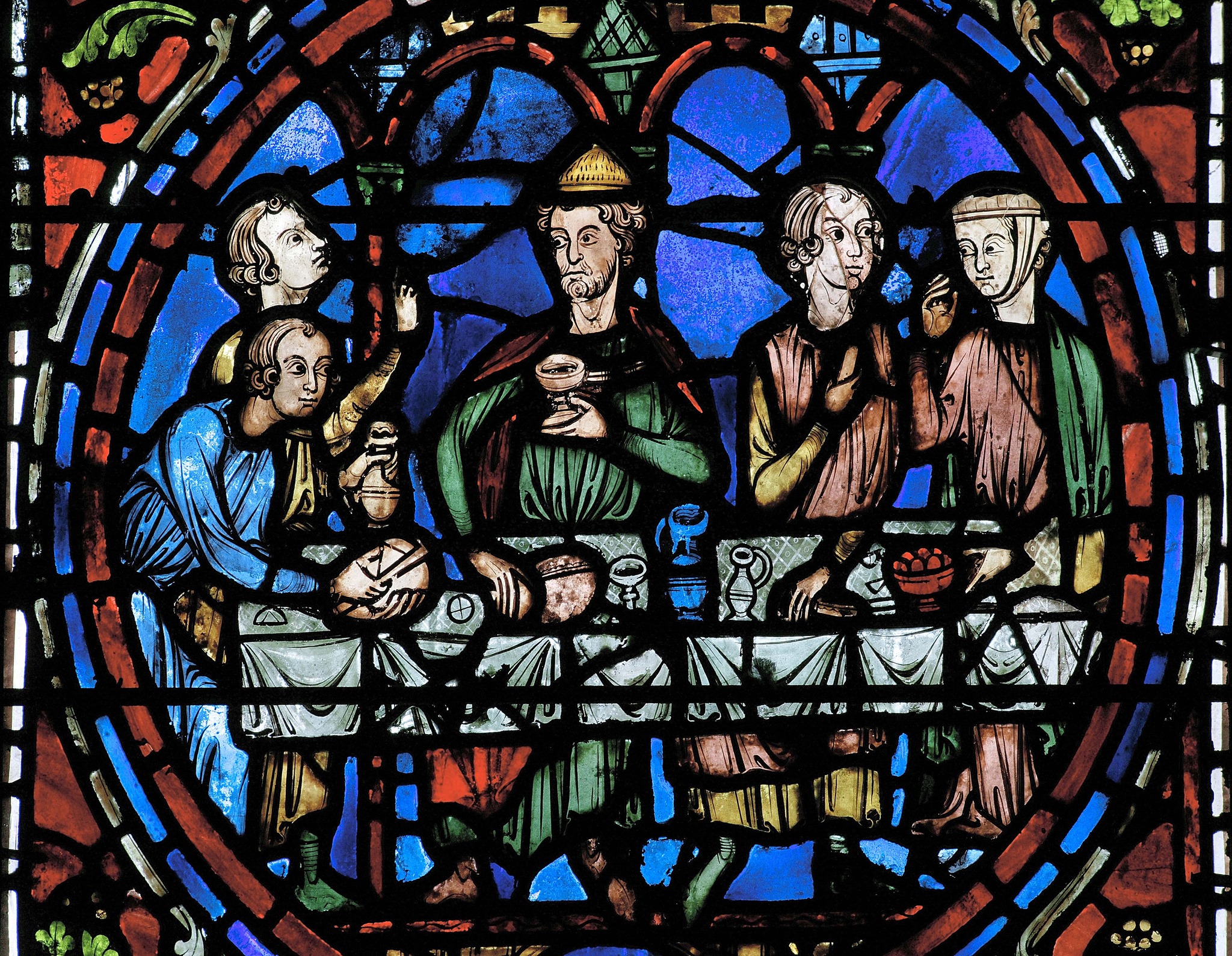 Petites illustrations de tables avec différentes fonctions dans notre belle cathédrale. Dans Saint Julien l’Hospitalier, le charpentier travaille sur la table à tréteaux. Dans la Belle Verrière, c’est le banquet des Noces de Cana. Dans le fils prodigue, également une table de repas. J’aurai également pu vous mettre la Cène des verrières occidentales. Je l’ai choisie en sculpture au portail royal de la cathédrale.